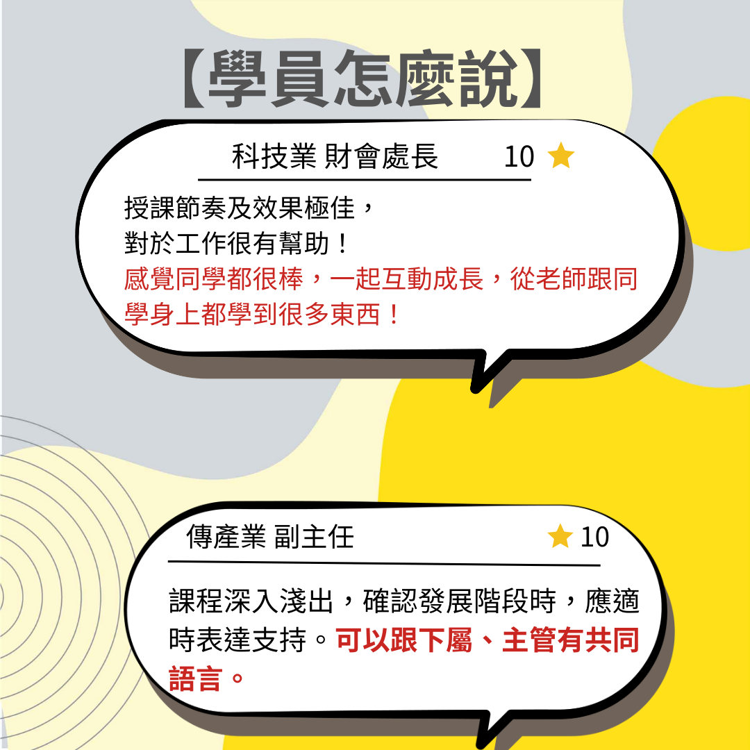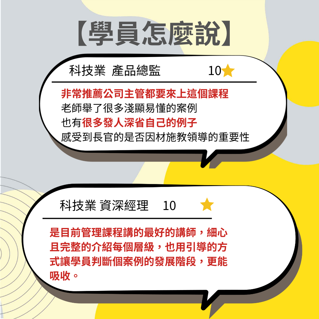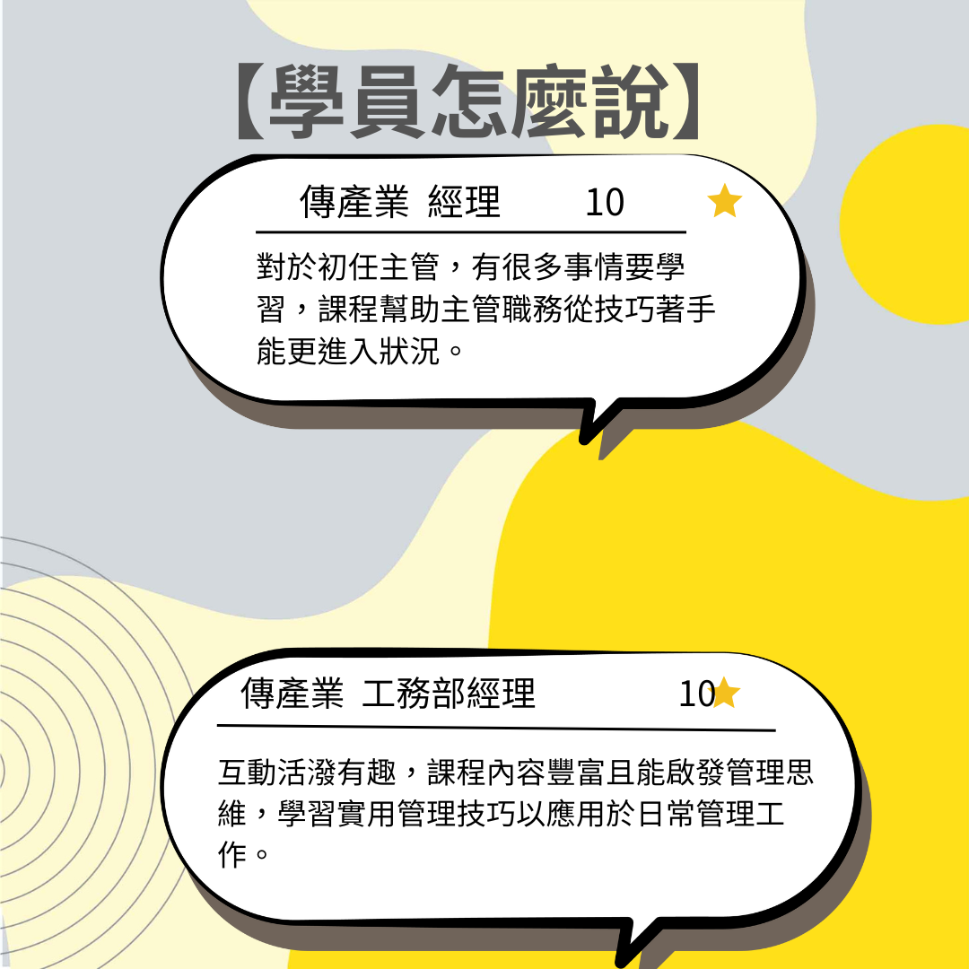 企管認為專職講師團隊是培育人才不可或缺的一環,他們具備高專業度和責任心,在保