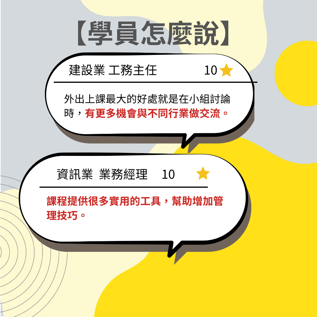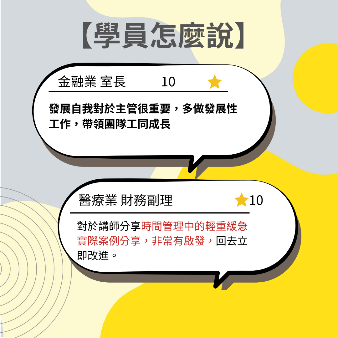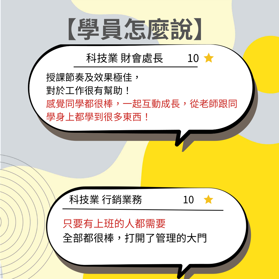 企管認為專職講師團隊是培育人才不可或缺的一環,他們具備高專業度和責任心,在保